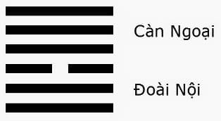 - Nội quái: Cấn (☶ – Núi, Kiên trì, Ổn định, Kiểm soát bản thân).