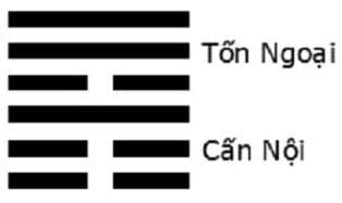 * Nội quái là ☶ (::| 艮 gen4) Cấn hay Núi (山).